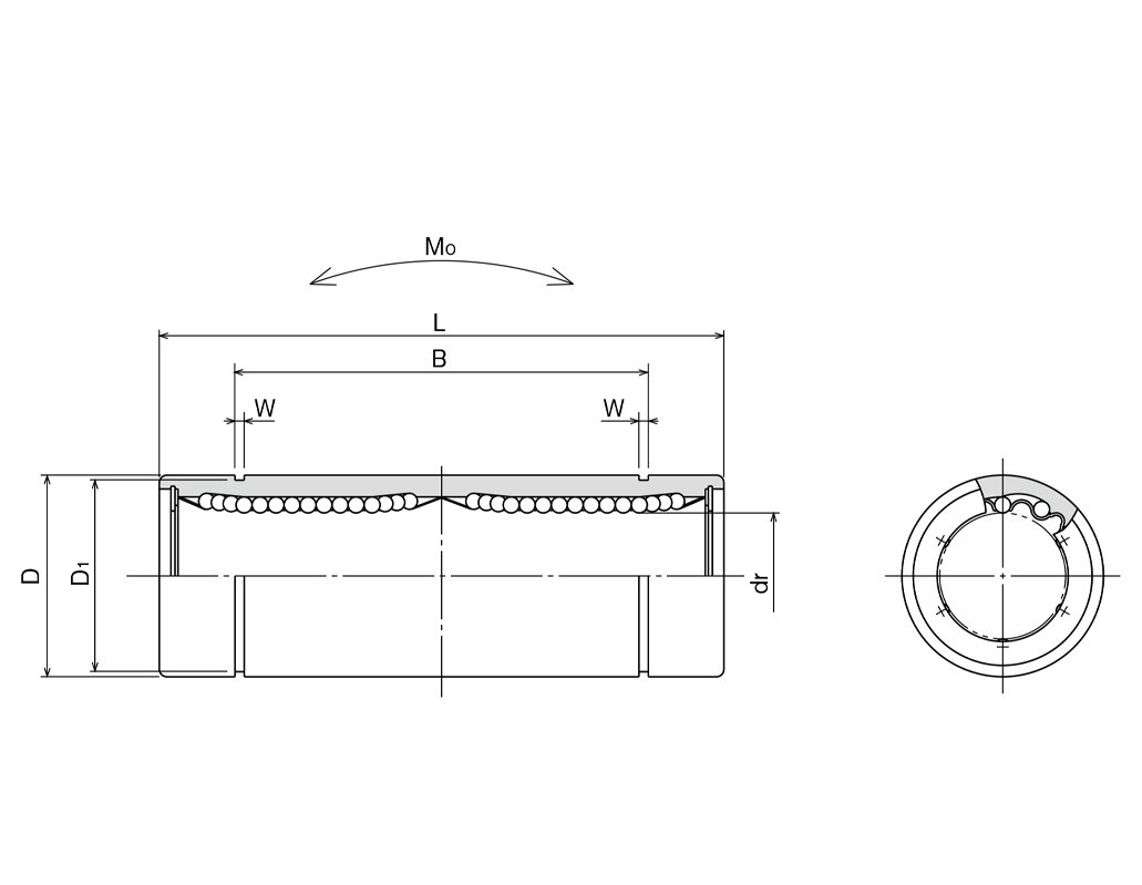 The linear ball bearings KB..W and LME..L are among the series commonly used in Europe. They differ in their dimensions from the types used in the USA and Asia. Linear ball bearings in Asia are mostly sold under the designations SM..W and LM..L (metric dimensions).