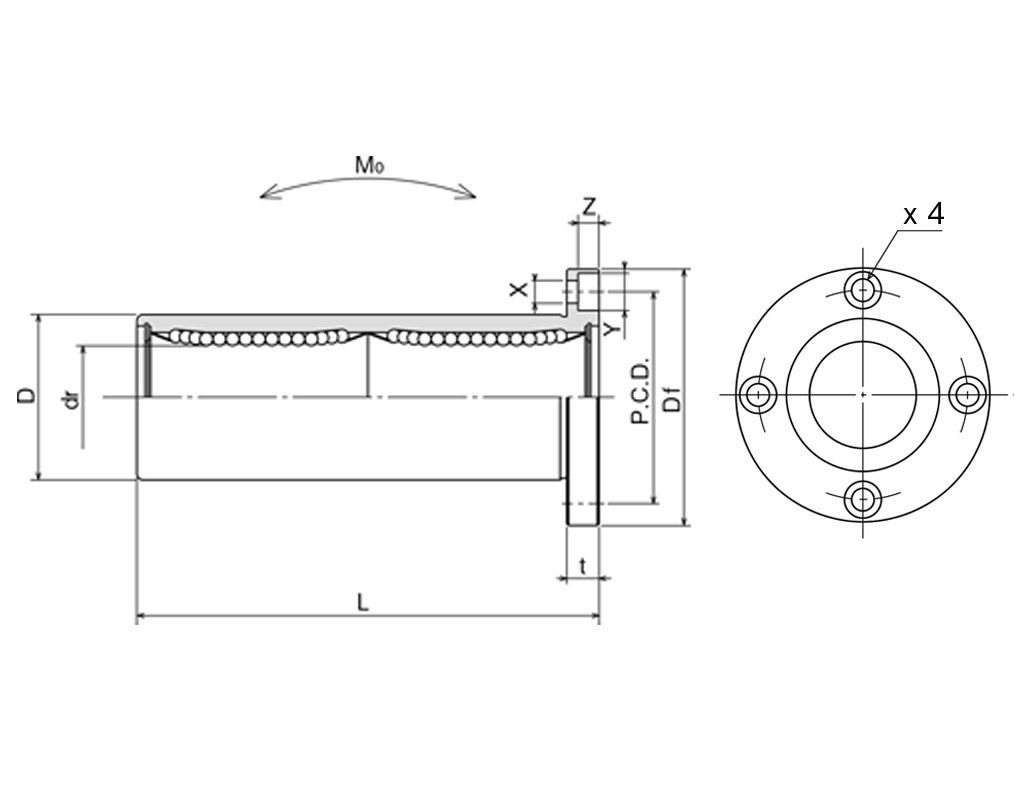 | Type (Lintec) | Cstat (N) | Nippon Bearing | dr (mm) | D (mm) | L (mm) | Df (mm) | t (mm) | PCD (mm) | Cdyn (N) |